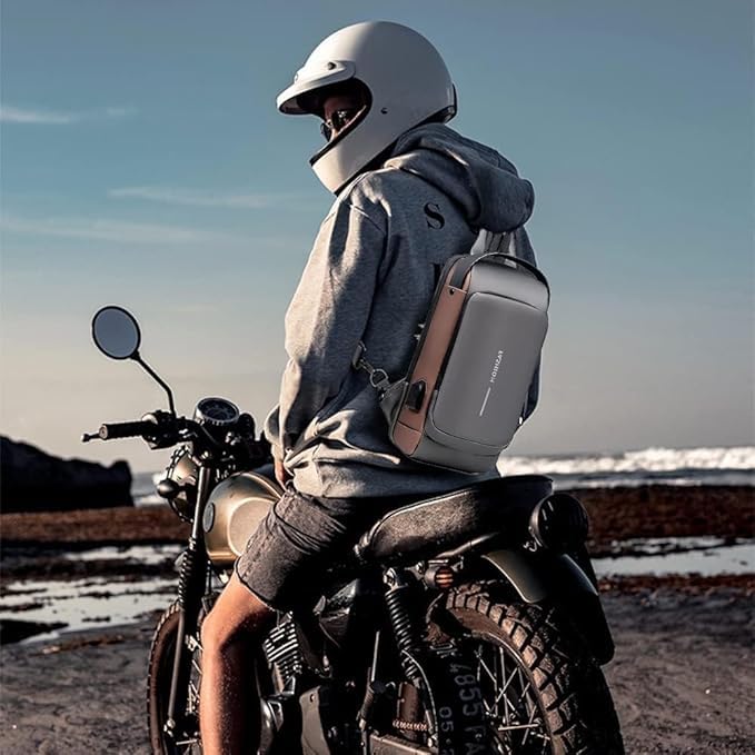 Waterproof Polyester Slim Unisex Crossbody Sling Bag Chest Backpack Men's Shoulder Bag, Leisure Travel Handbag, Hard Shell Anti-Theft Chest Bag, GREY COLOUR